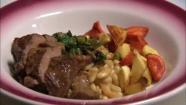 To finish: put pan back on medium/high, add the butter to melt, then the wine and stock. Stir vigorously to incorporate the butter into the sauce. Cook down until the sauce thickens some. Season to taste.