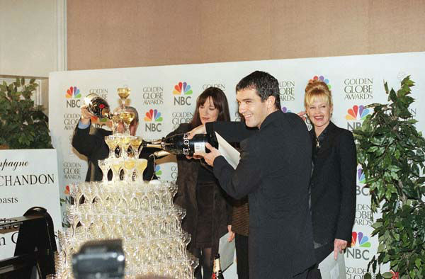 1 of 27: Katey Sagal, Antonio Banderas and Melanie Griffith pour champagne after announcing nominees for the Golden Globe Awards in Beverly Hills, Calif., Dec. 18, 1997. The Golden Globe Awards will be presented on January 18. (AP Photo/Mark J. Terrill) (AP Photo/ Mark J. Terrill)