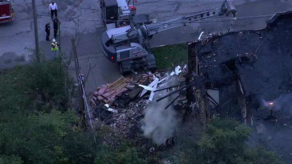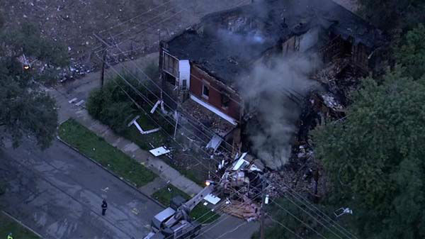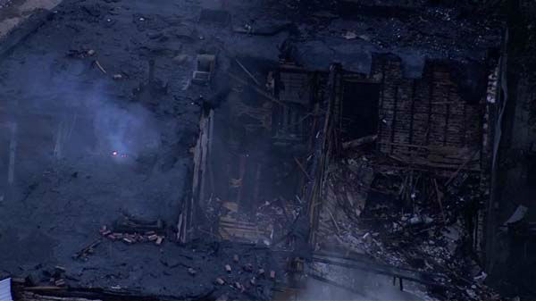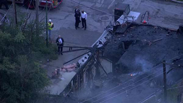 1 of 10: A structure that appears to be multi-family apartment building caught fire and collapsed on its right side Tuesday. ( Photo)