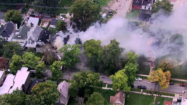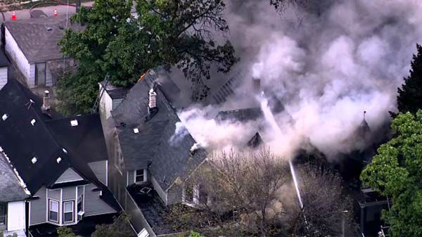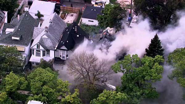 1 of 8: A fire spread from one home to two neighboring buildings in the 6700-block of South Emerald on the city's South Side. (WLS Photo)