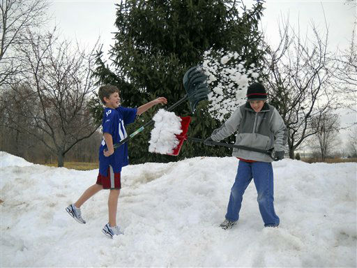 1 of 15: NO. 1: FISHERS, IN -- Photo courtesy of Shelley Rogers Landes shows her sons Jack Rogers, 12, left, and Maxwell Rogers, 9, as they play on a mound of snow in Fishers, Indiana. (AP Photo/ SCM**NY**)