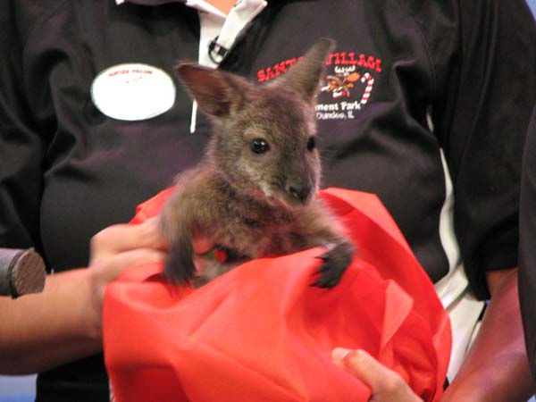 1 of 35: Santa's Village in East Dundee brought four of their friendly critters for a visit to ABC7's studios on Tuesday, July 31, 2012. With critters like the white tegu (the lizard), a haired tarantula, wallaby babies and a laughing kookaburra (the bird), this visit brought plenty of fun. (WLS Photo/ Shantelle Jefferson)