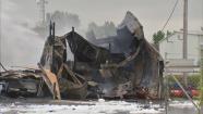 Smoke could still be seen coming from the industrial yard where first fire then several explosions erupted just hours earlier.