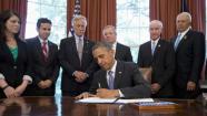 But even the feel-good moment at the White House came with reminders of the bitter partisanship that still makes future deals incredibly difficult for Obama. House Speaker John Boehner, R-Ohio, called the law part of the "Republican jobs plan," while House Democratic leader Nancy Pelosi of California said it "stands in stark contrast to the House Republicans' plan to saddle families with billions more in student debt."