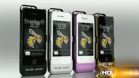 The Yellow Jacket is a case for cell phones that is actually a 650,000-volt stun gun. It has a safety switch and cover for the electrodes to prevent an accidental discharge.