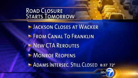 Adams and Jackson will be closed to all traffic. Monroe will reopen to eastbound traffic. Van Buren will remain open to westbound traffic.