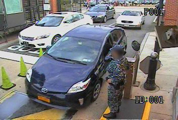 1 of 39: Alexis drives his rental car, a blue Toyota Prius, through the Washington Navy Yard main gate. ( Photo / FBI)