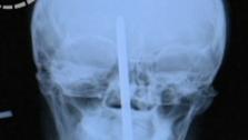Screwdriver lodged in man's head