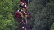 FALLS TOWNSHIP, Pa. - August 7, 2013 (WPVI) -- Chopper 6 HD was over Lower Morrisville Road in Falls Township Wednesday night as rescuers pulled a woman out of her mangled car.