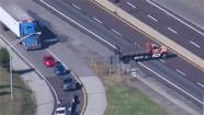 The view from Chopper 6 HD showed a number of workers on an overpass near mile marker 25 during the repair work.