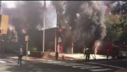 Firefighters arrived on the scene and ran toward the burning fire station with their hoses.