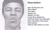 The suspect is described as a black male, about 20 to 30 years old standing 6'2" tall and weighing 210 pounds. He had a light complexion, a medium build, sideburns and a skull cap. He was also wearing a light grey Nike sweatshirt, blue jeans and black gloves.