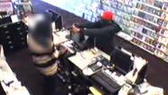 Surveillance video released by police shows the suspect pointing a handgun at the clerk while making the demands.