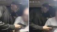 Surveillance footage shows the suspect approach the victim from behind, and within seconds the suspect had a handgun shoved into the victim's chest.