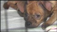 Workers there say the 'puggle' mix was found full of fleas and had bruises all over her body.