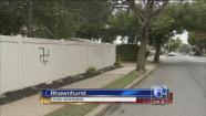The vandal or vandals covered some ground in the neighborhood, repeating the lewd image, using misspelled profanity and scrawling swastikas.
