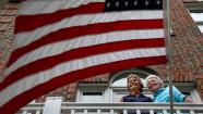 Joan Darrah, left, who served nearly 30 years in the Navy and lived through the Sept. 11 attack of the Pentagon, and her spouse, Lynne Kennedy, pose for a photo at their home in Alexandria, Va., Thursday, June 27, 2013. Just two years ago, gays were prevented from openly serving in the military. Now, with the Supreme Court ruling, same-sex spouses of gay veterans and service members will be able to share in their benefits. (AP Photo/Charles Dharapak)