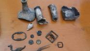Items unearthed in Lower Manhattan are on display during a news conference, Wednesday, Aug. 7, 2013 in New York. Wine bottles corked centuries ago. A copper half-penny. A pair of children's shoes.These are some of the remnants of early New York life workers discovered just steps from Wall Street while digging under Manhattan to install new utilities for the growing residential and business South Street Seaport area. (AP Photo/Mary Altaffer)