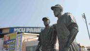 This undated image provided by the Brooklyn Cyclones shows a statue of Pee Wee Reese and Jackie Robinson at MCU Park in the Coney Island section of the Brooklyn borough of New York, where the minor league Cyclones team plays. (AP Photo/Brooklyn Cyclones)