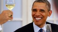 US President Barack Obama smiles during a dinner with German chancellor Angela Merkel, unseen, at Charlottenburg palace in Berlin Wednesday, June 19, 2013. (AP Photo/Michael Sohn, pool)